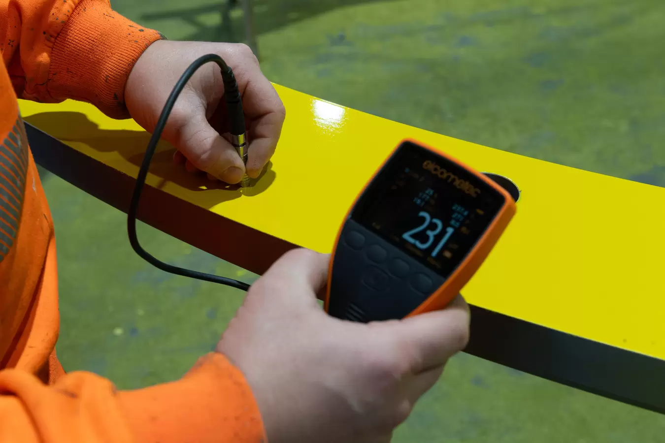 Wir arbeiten mit modernsten Schichtdickenmessgeräten und überprüfen laufend die verschiedenen Schichten des Beschichtungsaufbaus, damit wir Ihnen eine maximale Lebensdauer der Objekte garantieren können.
